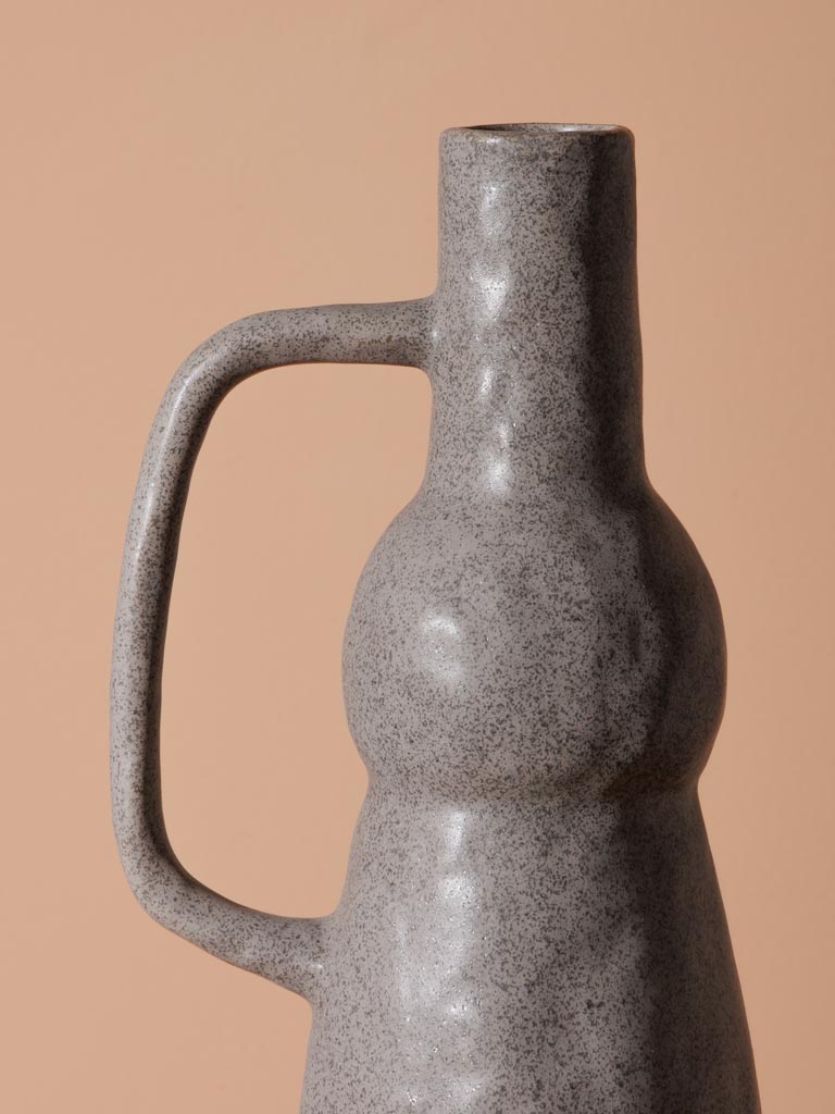 ּאגרטל קרמי בגוון אפור עמוק, בעל צורה אורגנית ונוכחות עדינה.