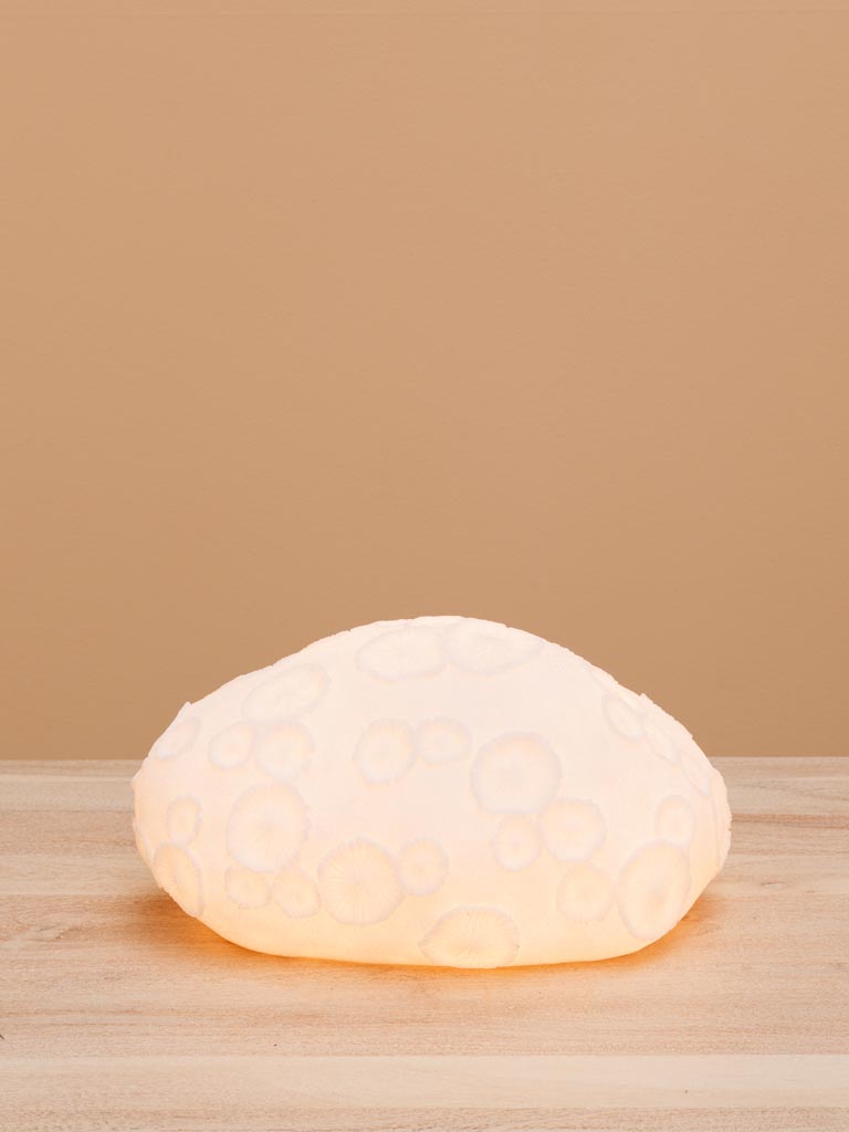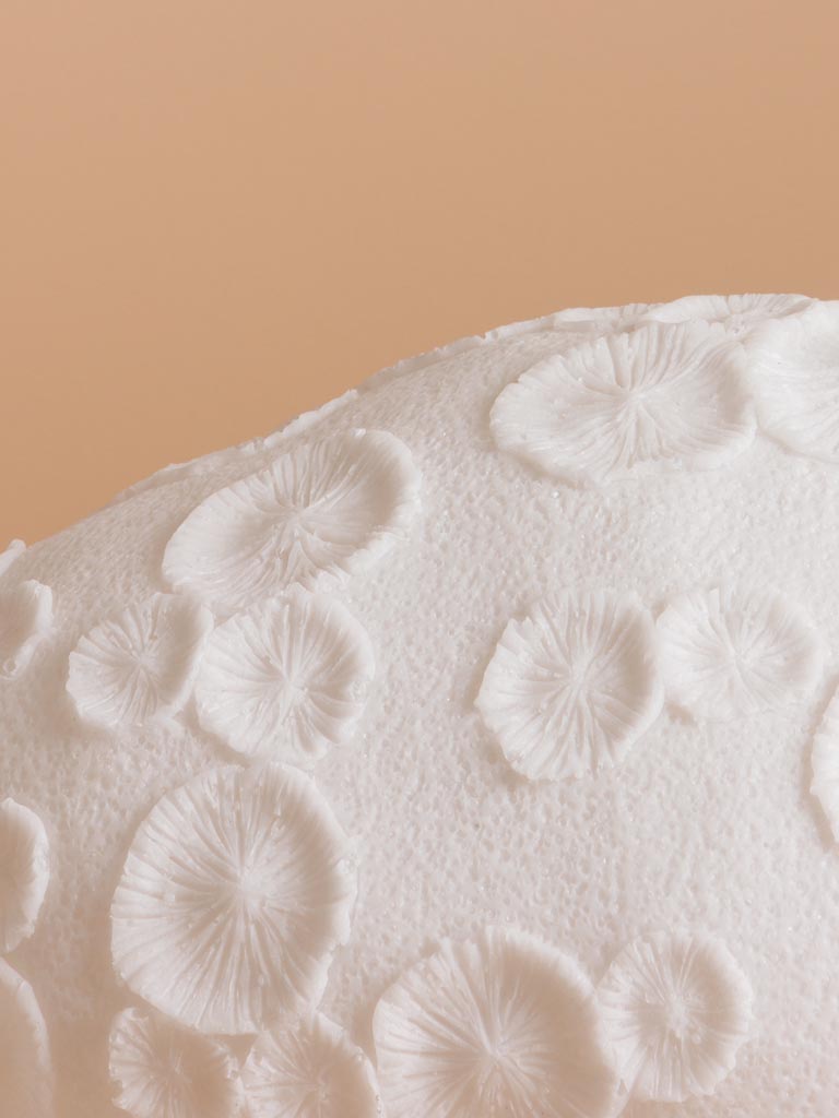 המנורה מעוצבת בצורת אלמוג מאובן, כאילו נשלף מקרקעית הים אחרי מאות שנים. הטקסטורה שלה מזכירה הדפסי פרחים קטנים שנוצרו בתהליך ההתאבנות דוגמה טבעית שנראית כמעט כמו תחרה מאבן.