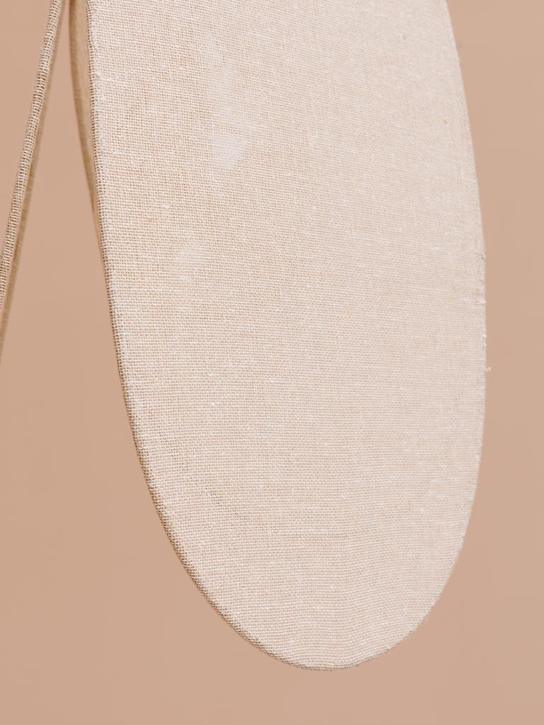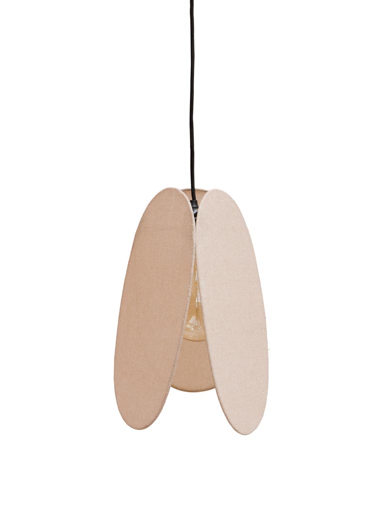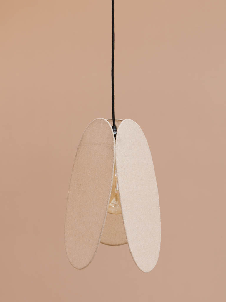מנורת תקרה בעיצוב נקי ומעודן, עשויה בד כותנה רך על שלד ברזל עדין.