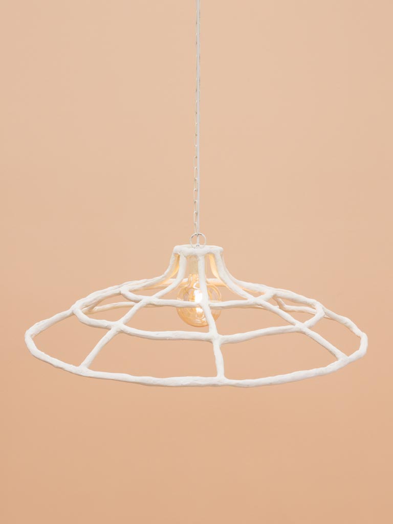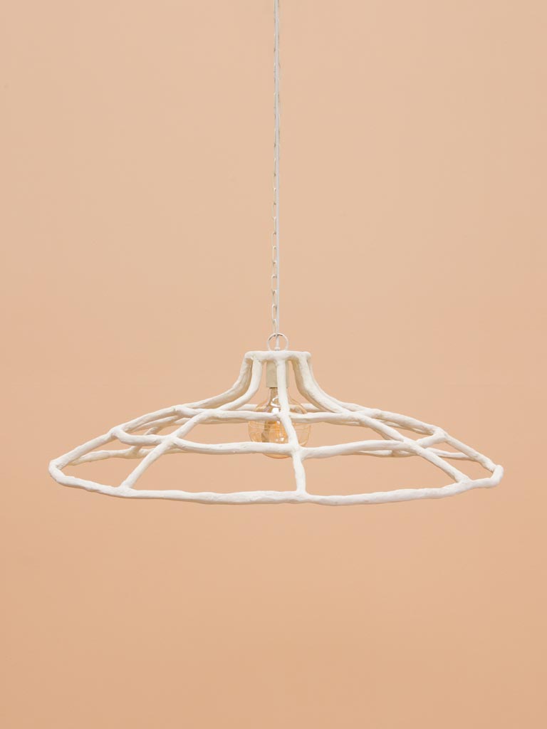מנורת תקרה אוירה בעיצוב אמנותי עשויה ברזל מלופף בנייר בעבודת יד.