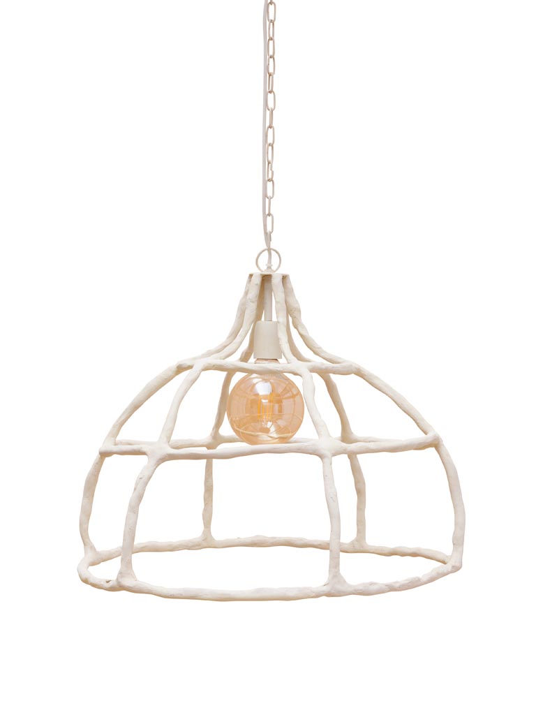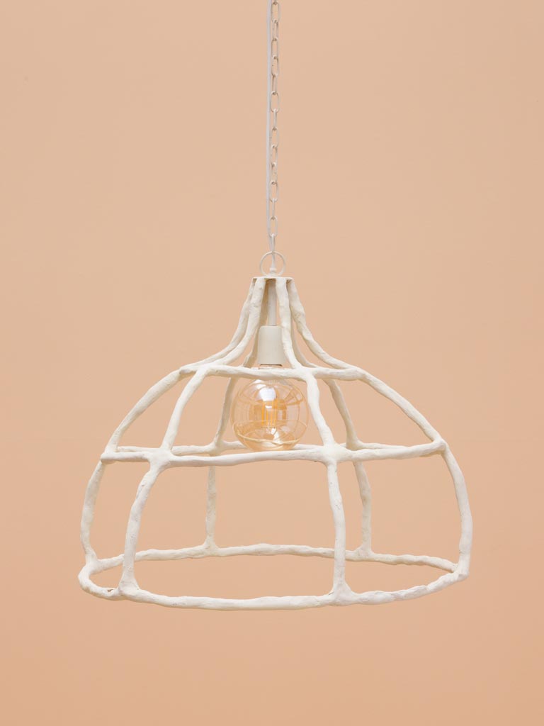 מנורת תקרה בעיצוב טבעי ואמנותי עשויה ברזל ונייר בעבודת יד.