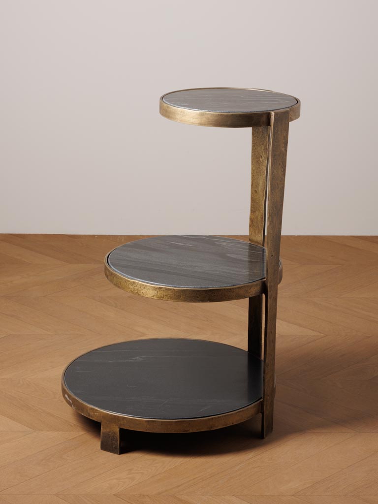 שולחן צד שלוש קומות שיש איכותי בגימור פליז