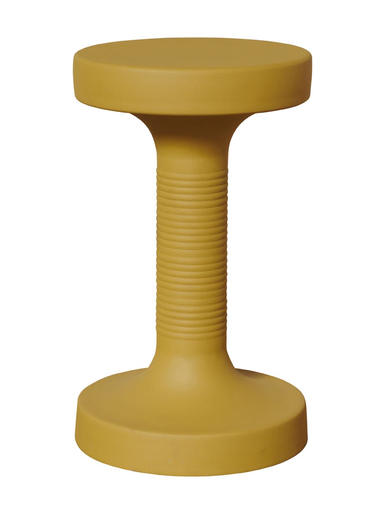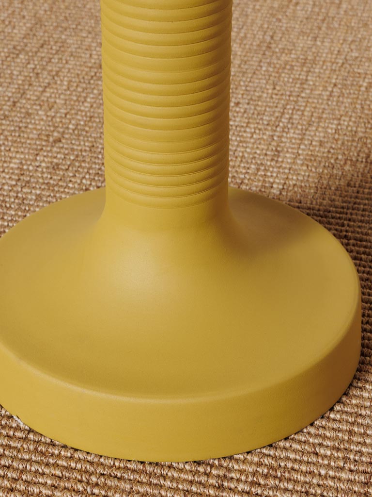 שולחן צד עגול בעיצוב עכשווי ונקי, עשוי ברזל מלא בגימור מט, בגוון חרדלי חם ומרענן.